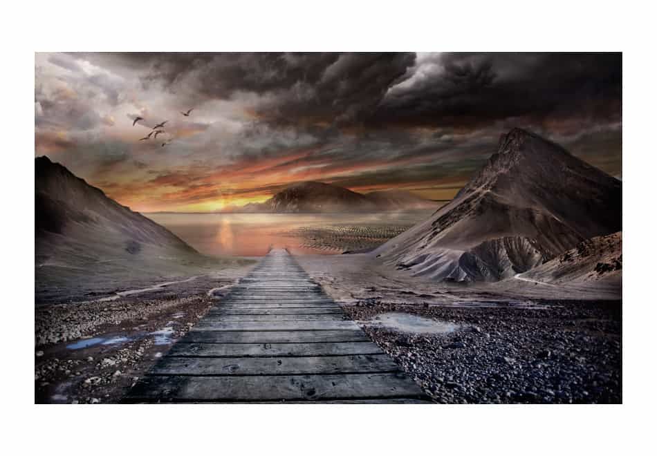 Øde og stille bro i aftenskumringen