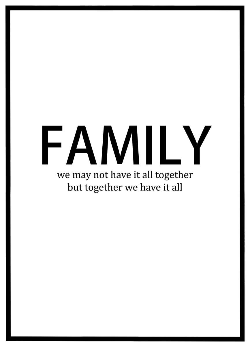 Familie er fundamentet i vores liv – et sted hvor vi finder støtte, kærlighed og fællesskab. Denne plakat fremhæver essensen af familiens betydning med det smukke citat: "We may not have it all together, but together we have it all." En påmindelse om, at det ikke handler om perfektion, men om de mennesker, vi deler vores liv med.