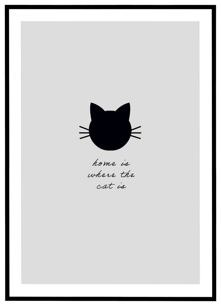 Denne charmerende plakat med teksten “home is where the cat is” vil med garanti vække smil hos enhver katteelsker. Med sit enkle og grafiske udtryk kombinerer plakaten moderne minimalisme med varme og personlighed.