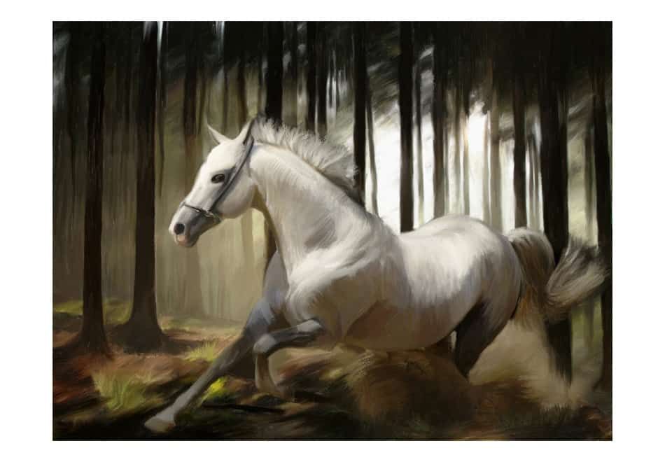 Hvid hest i skoven
