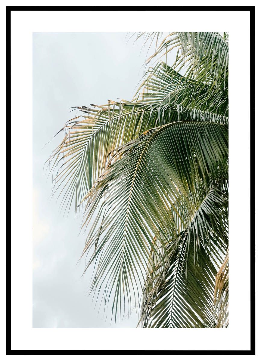 Indret dit hjem med naturens enkle skønhed gennem denne elegante plakat, der indfanger palmebladene i en let brise. De detaljerede grønne blade strækker sig smukt mod den bløde, lyse himmel og skaber en rolig og afslappende atmosfære. Perfekt til dem, der ønsker at bringe et strejf af eksotisk natur ind i deres indretning.