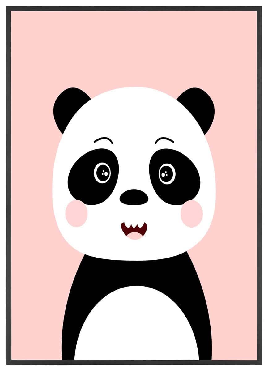 En sød og enkel illustration af en lille panda giver denne plakat et varmt og venligt udtryk, der passer perfekt til børneværelset. Pandaen er tegnet i en stiliseret, rund form med store øjne og lyserøde kinder, hvilket gør den både charmerende og let genkendelig for mindre børn. Den bløde rosa baggrund skaber en rolig stemning og tilfører et strejf af farve uden at virke dominerende i rummet.