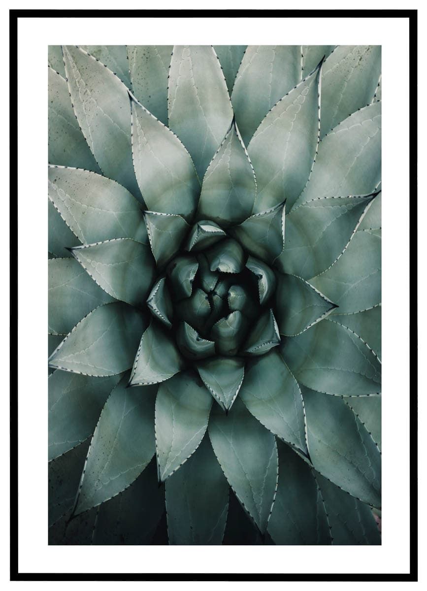 Denne fine plakat viser en sukkulent i et fascinerende nærbillede, der afslører hver eneste detalje i plantens smukke, symmetriske blade. Sukkulenter er kendt for deres robuste natur og evne til at opbevare vand, hvilket gør dem til symboler på overlevelse og modstandsdygtighed. Deres geometriske former og sarte farver gør dem til en favorit inden for moderne indretning. Denne plakat tilføjer et strejf af natur og elegance til ethvert rum, uanset om det er i stuen, på kontoret eller i soveværelset. Med sin rogivende grønne tone og harmoniske udtryk er plakaten perfekt til at skabe en afslappende atmosfære og bringe en smule natur ind i din hverdag.