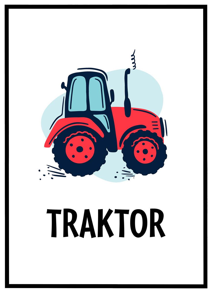 Giv værelset et landligt og charmerende præg med denne farverige plakat af en traktor. Den røde traktor med store hjul er tegnet i en stilfuld og børnevenlig illustration, som vil appellere til små maskinentusiaster.