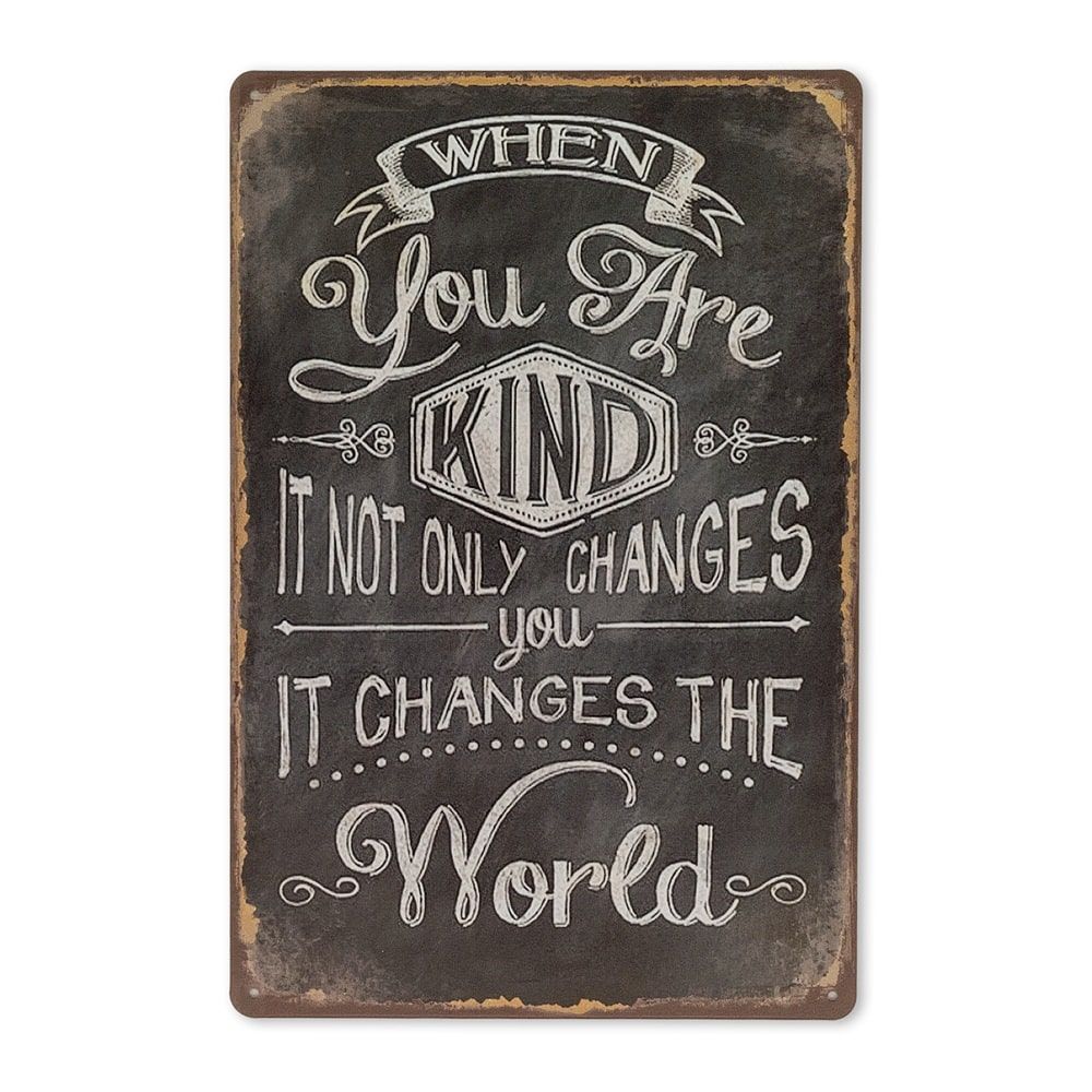 Skab en stemningsfuld og inspirerende atmosfære i dit hjem eller arbejdsrum med dette flotte metalskilt med teksten "When You Are Kind It Not Only Changes You It Changes The World". Et budskab, der minder os om værdien af venlighed og de positive ringe i vandet, det skaber – både i hverdagen og i verden omkring os.